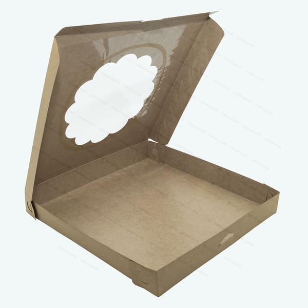 Quiche Box Large with PLA Flower Window. Size 28 x 28 x 4cm. Flat Pack